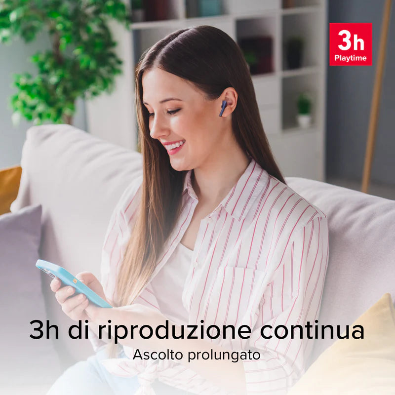 - Auricolari True Wireless Stereo con design semi in-ear per comfort e stabilità